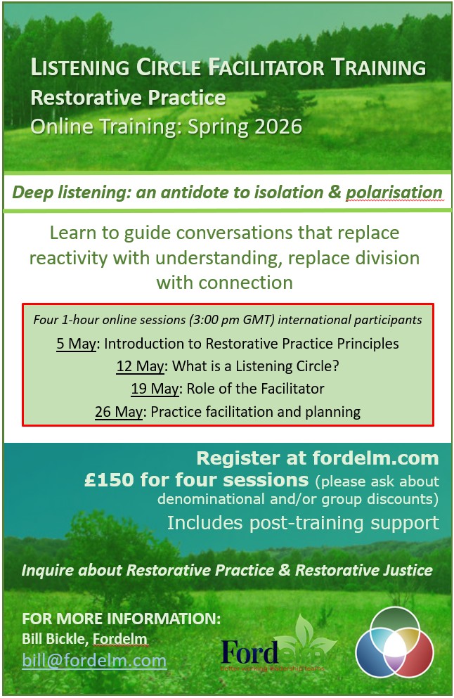 Join Fordelm for a four-week online Restorative Practice training designed to equip you to facilitate Listening Circles with clarity and confidence.